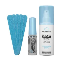 Heeft u last van kalknagels, zwemmerseczeem of onaangename voetgeur? Dan biedt de 10 Day Fresh schoenenspray van ProtectAir uitkomst. De spray voorkomt herinfectie door schimmels en bacteriën in uw schoenen, het ondersteunt de behandeling van kalknagels en zwemmerseczeem en verwijdert en voorkomt geur in (sport)schoenen en sportartikelen.